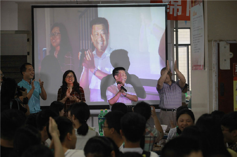 晚上6时,高三毕业生陆续入场,大家笑容满面,纷纷在餐桌前合影留念。音乐响起,一曲《朋友》,温情动人,拉开了毕业晚宴的帷幕。各班老师轮流合唱,赢得了同学们阵阵欢呼和掌声。