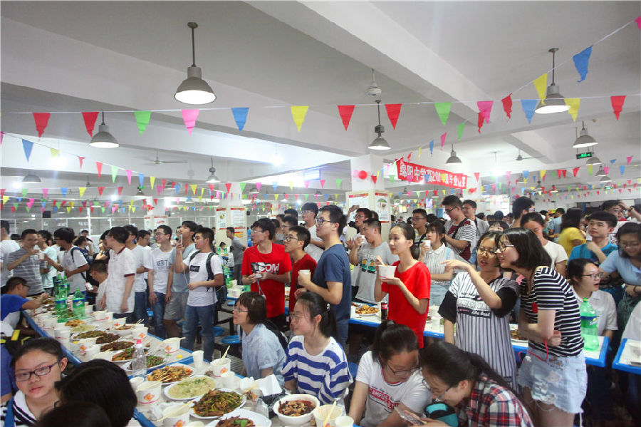 食堂的师傅们为同学们精心准备了丰盛的佳肴。整个晚宴欢声笑语,其乐融融。师生们举杯共饮,彼此祝福,共叙师生情、同窗情。最后,所有高三学子共同举杯,敬昨天,敬未来,敬即将离开高中生活踏入大学校园的自己,一定不忘初心,扬帆起航,去拼搏一个美好的未来!一个多小时的晚宴很快结束,但是同学们的留恋之情却愈加浓厚。