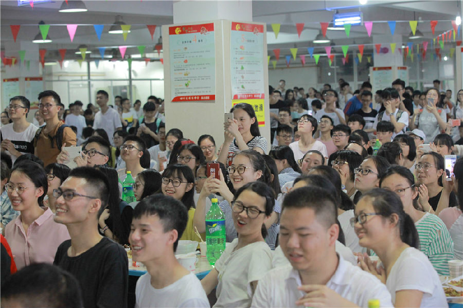 在享受完美食和音乐之后,同学们回到班级以各种形式的表演来开展毕业晚会,有温情暖人的歌曲,有青春动感的舞蹈,有感人肺腑的诗歌朗诵,有表达心声的小品……大家互道珍重,感谢那些陪伴了彼此三年青春的老师、同学。一词一句,流露真情;一言一语,扣人心弦,许多毕业学子露出幸福的微笑,流下不舍的眼泪。