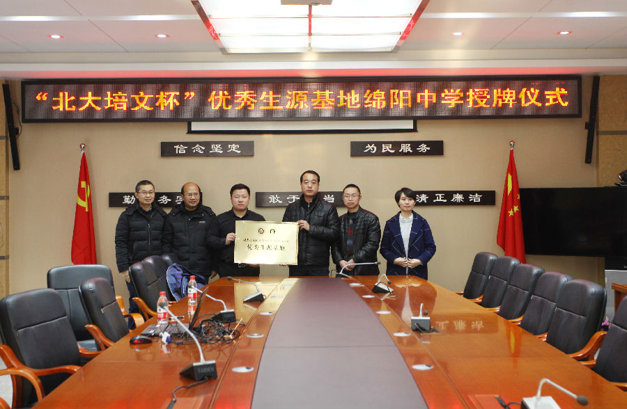 在授牌仪式上,“北大培文杯”赛事推广总监张振华介绍了北大培文教育文化产业集团的概况,表达了希望通过建立优秀生源基地的方式,让绵阳中学学生的才华得到更多高校青睐的美好祝愿。