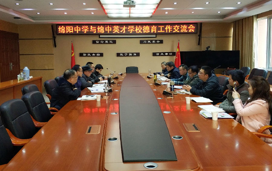 12月20日下午,绵阳中学英才学校初中、小学部政教处、安全处、心理室行政干部在德育分管领导任校长带领下,到绵中本部开展德育工作交流。杨云义副校长带领政教处、安全处、团委的行政干部热情接待,并召开了交流会。会议由校长助理、政教处主任苟文彬主持。